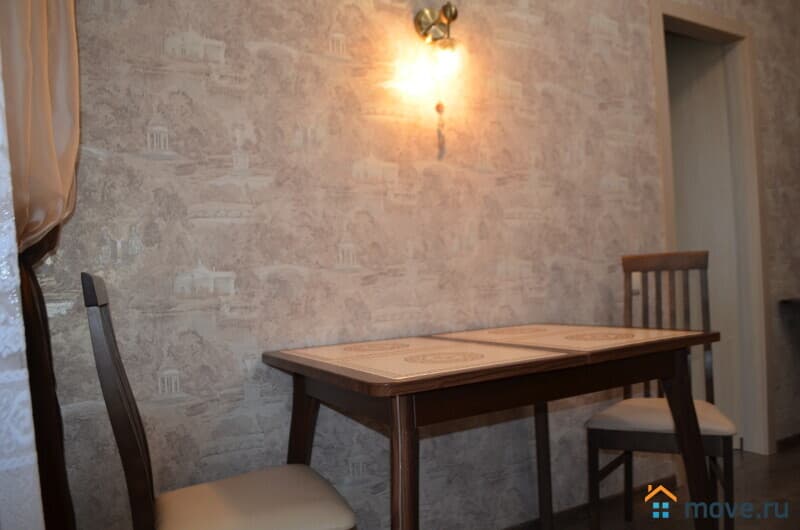Кухня: вся необходимая посуда, плита, микроволновка, холодильник, электрочайник. Чай, кофе и сахар — бонус при заселении.