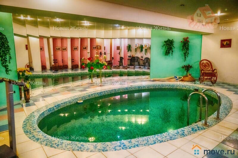 Цокольный этаж: гараж 60 кв. м. на две машины. Бассейн 60 кв.м., противосток, вентиляция приточно-вытяжная, осушитель воздуха, теплый пол. Сауна, душ, раздевалка, туалет, котельная, фильтровальная, винный погреб, постирочная, кладовая, тренажерный зал.