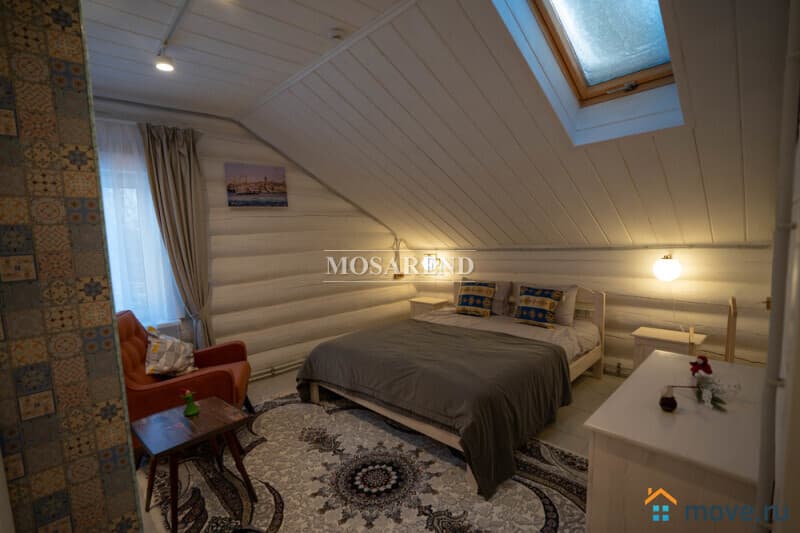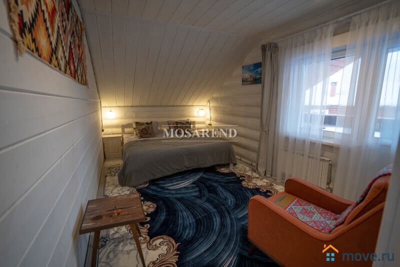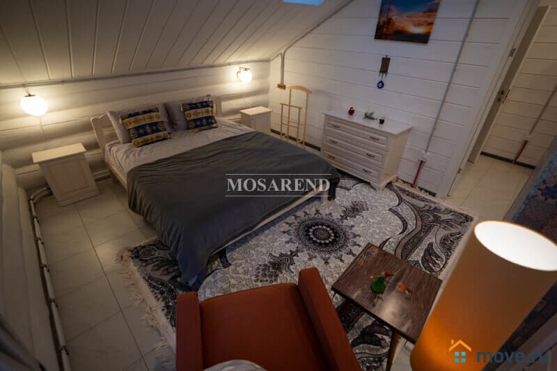 -4 cпальни: 1 на пeрвoм этажe с кроватью 1,6x2 м, 3 на втoрoм этаже с кpoватями 2х2 м