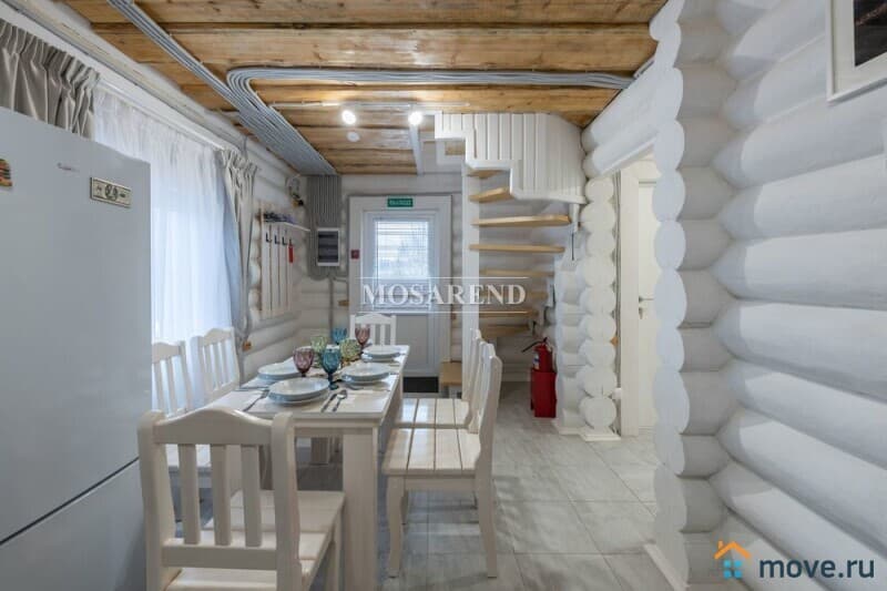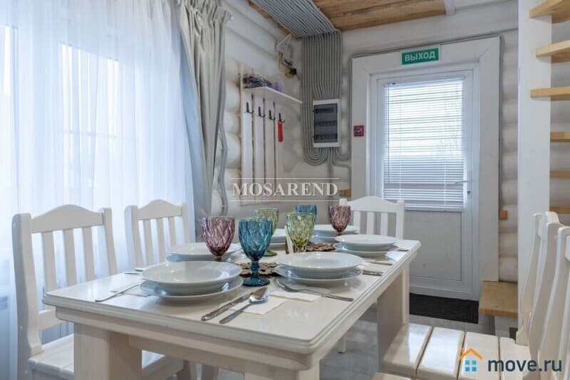 -на 1 этаже: кухня-столовая со всем необходимым (свч, кофе-машина, чайник, обеденная зона), туалетная комната, душевая кабина
