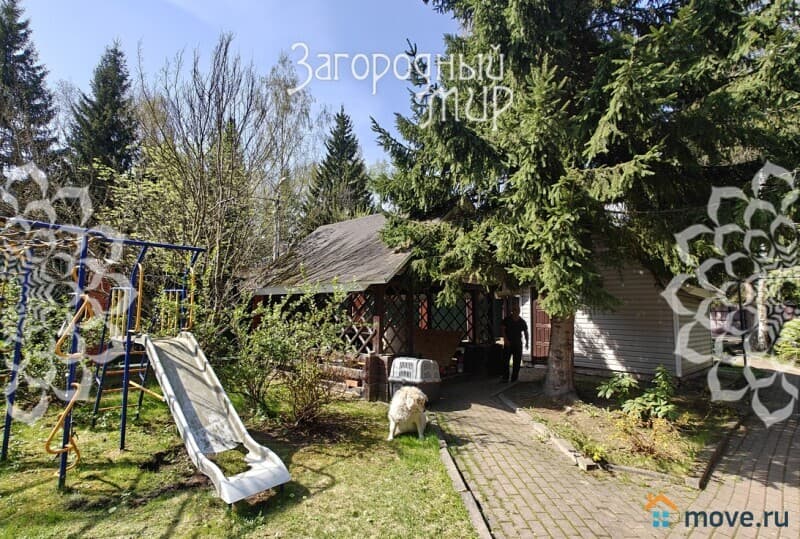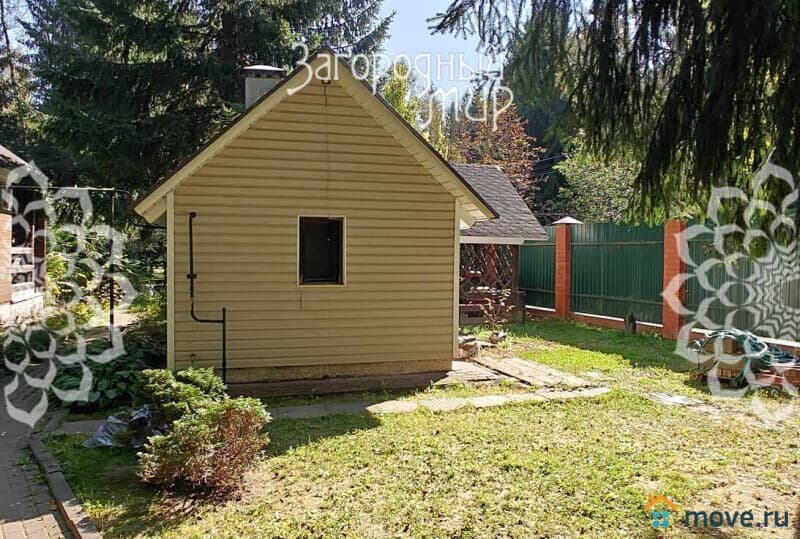 Участок 21 сотка, ровный, правильной формы. Огромные ели и сосны, несколько садовых деревьев, красивый ландшафт и чистейший лесной воздух. Много цветов и декоративных растений, небольшой прудик с мостиком. Участок полностью огорожен, у ворот выложенная декоративным камнем площадка для машин. Отдельное здание - бойлерная, куда заведён магистральный газ. Все коммуникации (газ, электричество, вода и канализация) - действующие. Есть хозблок, бревенчатая баня, большая крытая беседка с самоваром, мангал, оборудованная детская площадка.