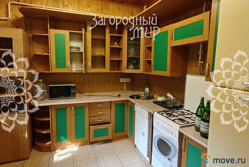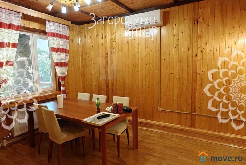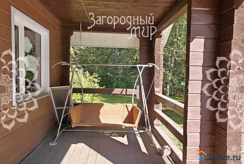 Полностью жилой, уютный коттедж на ленточном фундаменте, стены - брус с утеплением, снаружи отделан имитацией бруса и свежеокрашен. Окна - три стекла, двойной стеклопакет. Кровля - мягкая черепица с утеплением. Перед входом - терраса из палубной доски, с качелями и столом. На первом этаже - просторная гостиная с дровяным камином, отдельная кухня, спальня - кабинет, санузел, техническое помещение и лестница на второй этаж. Здесь три спальни, лоджия и санузел. Отопление дома - магистральный газ.