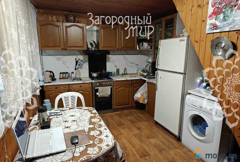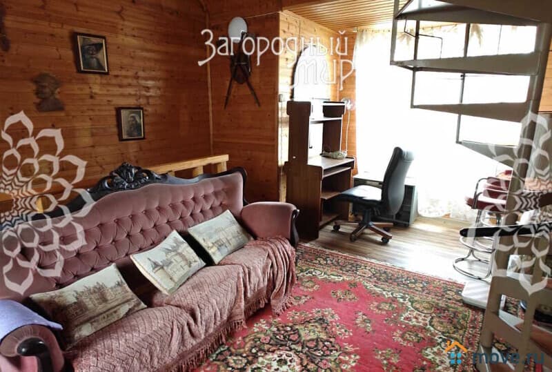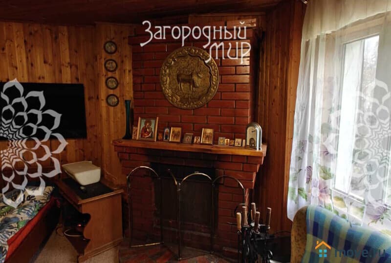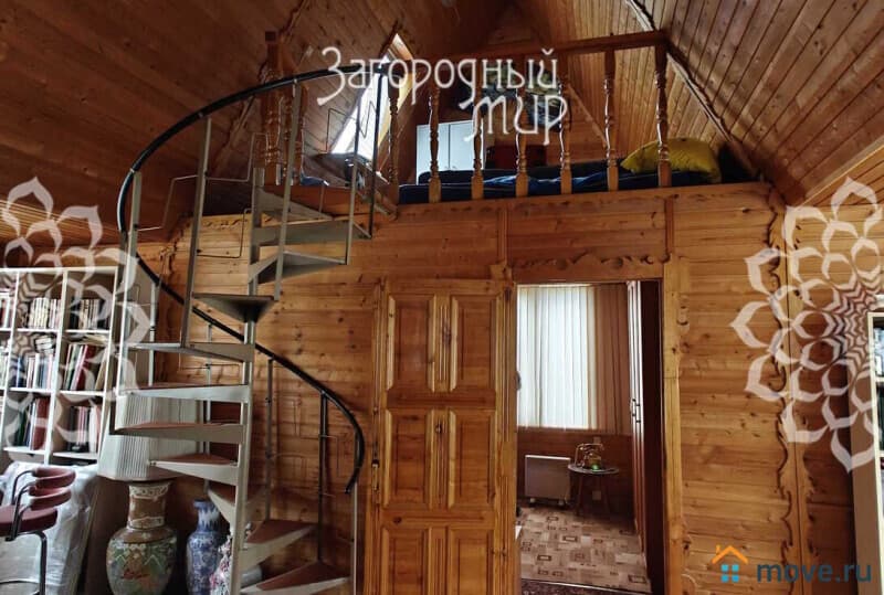 Дом жилой, из бревна, дополнительно утеплён снаружи, новая кровля. При входе уютная крытая терраса. На первом этаже кухня - столовая, гостиная с камином, санузел. На втором этаже холл с кабинетом, отдельная спальная и красивая антресоль со спальным местом. В дом заведены коммуникации - электричество, вода, канализация. Газ по границе участка.