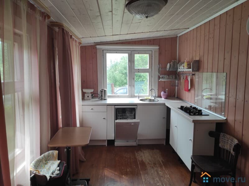 Дом деревянный площадью 65.7 кв.м. на ленточном фундаменте 9х7 м. с мансардой, 2 комнаты и кухня, терраса. Санузел в доме вывод в переливной двойной септик, из колодца водопровод заведен в дом, для нагрева воды имеются бойлеры, также установлена душевая кабина и посудомоечная машина. Плита газовая пропан балонный.