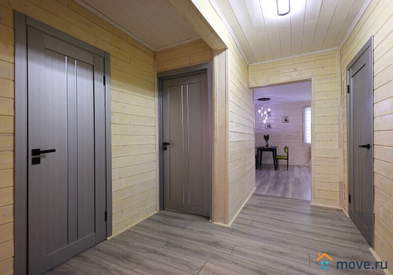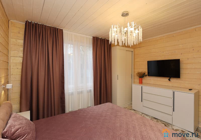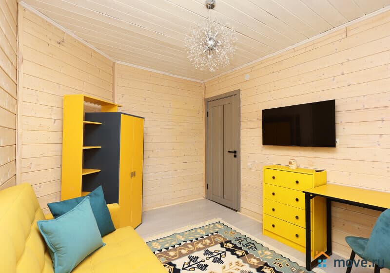 В доме 3 изолированных комнаты, из них: 2 спальни (мастер- спальня и гостевая) и детская комната. А так же большая гостиная, объединённая с кухней. И технические помещения- ванная и бойлерная. Все помещения светлые, с окнами, в гостинной окна в пол.