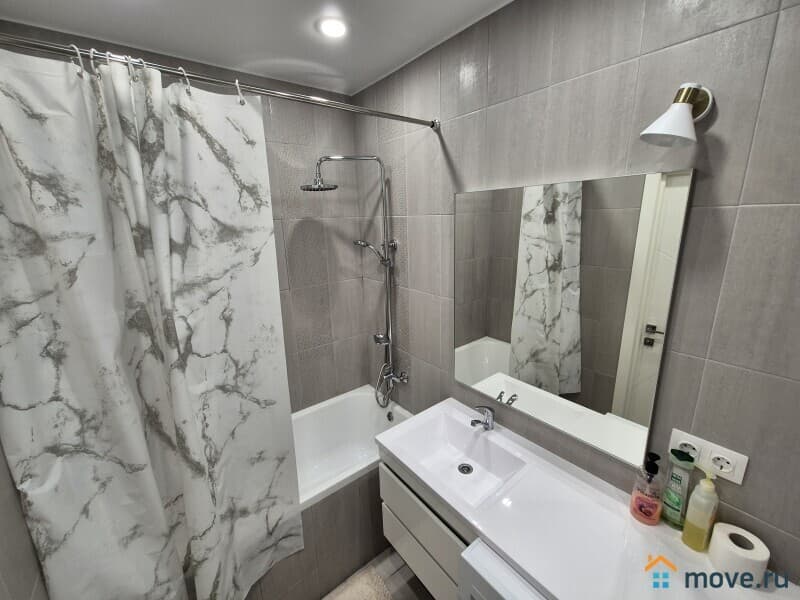 В ванной стиральная машина, туалетные принадлежности, сушилка для белья.