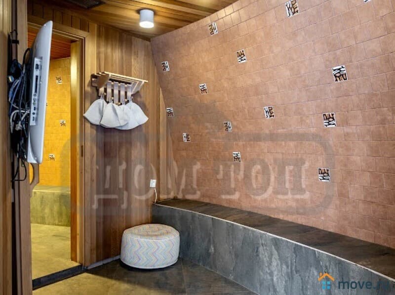 На первом этаже: холл, большая гардеробная. Гостиная на 15 персон с панорамными окнами с выходом к уличному бассейну и мангальной зоне. Зона бани: комната отдыха, парилка.