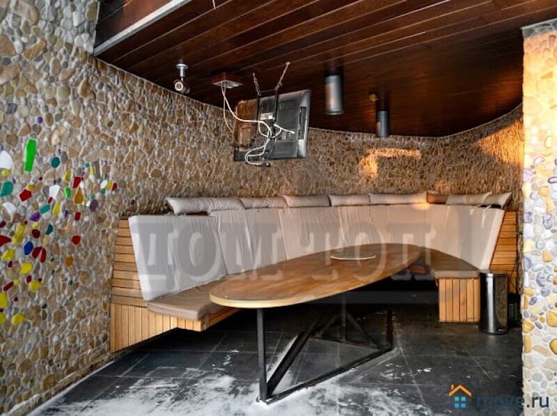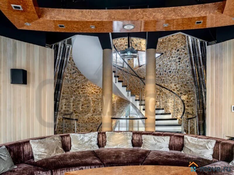 На втором этаже: гостиная с огромным диваном на 15 персон. Кухонная зона