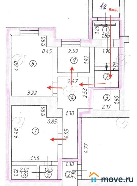 - 3 раздельных комнаты ( в 2 х есть окна) + коридор,
