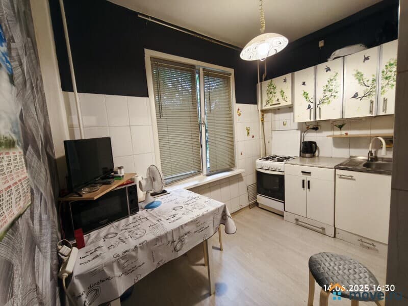 Квартира находится на первом этаже пятиэтажного дома 1965 года постройки, есть мусоропровод. Общая площадь квартиры – 43,7 кв.м.