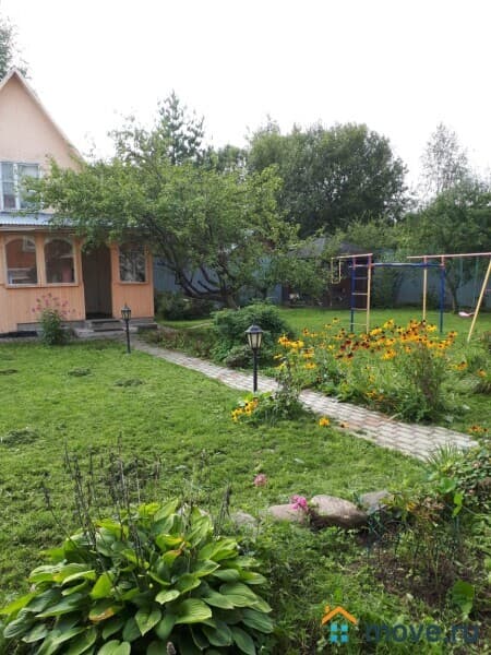 На участке баня, крытый гараж на 2 машины, беседка, детский комплекс.В посёлке детская площадка, рядом лес, озеро, магазин.