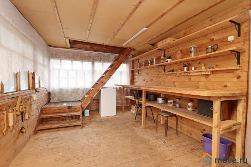 Основное строение сруб из бревна. Планировка первого этажа: кухня, две смежные комнаты. На втором этаже жилая комната и 2 подсобных помещения.