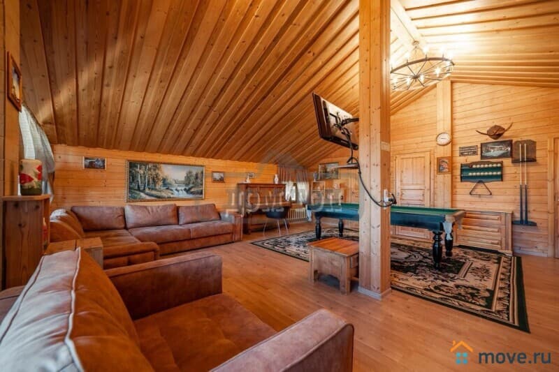 На 2 этаже: бильярдная, 3 спальных комнат, 2 санузла с ванной, телевизор, караоке.