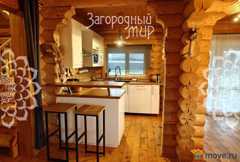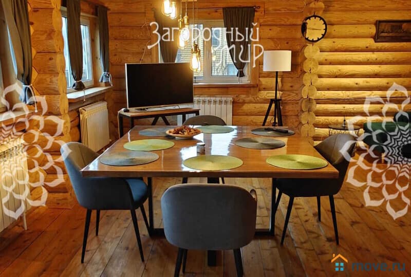 Лот: 69298. Симферопольское ш., 60 км от МКАД, Крюково, КП Речной. Добротный дом 165 кв.м из оцилиндрованного бревна в идеальном состоянии, под ключ с мебелью и техникой, с газовым отоплением, на участке 10 соток в охраняемом коттеджном посёлке на берегу реки. Можно въехать сразу после сделки.