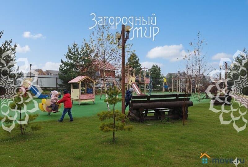 Участок ровный, прямоугольный, солнечный. Огорожен забором в общем поселковом стиле. Подъезд к участку - асфальт, дорожка к калитке и к парковке на участке забетонированы. Вдоль забора высажены туи, перед домом плодовые деревья и кусты. Большой, красивый газон. За счёт расположения на высоком месте, на участке всегда сухо. Посёлок полностью жилой. Все коммуникации центральные: газ, электричество, вода, канализация. Всё действует.