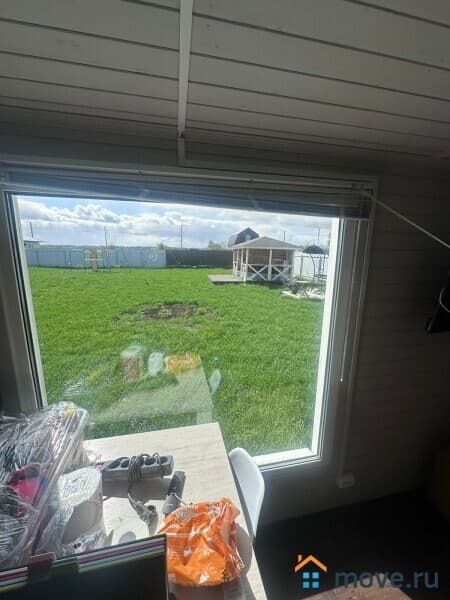 Планировка: небольшая кухня-гостиная, комната для отдыха с двух'яросной кроватью и санузел. В гостиной большое панарамное окно с видом на участок и беседку. Установлен кондиционер.