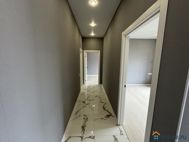 ОТДЕЛКА: керамогранит, ламинат. Обои на стенах. Натяжные потолки со встроенными карнизами и их подсветкой.