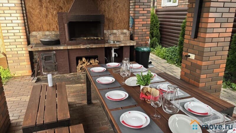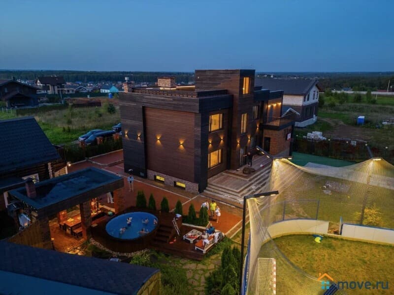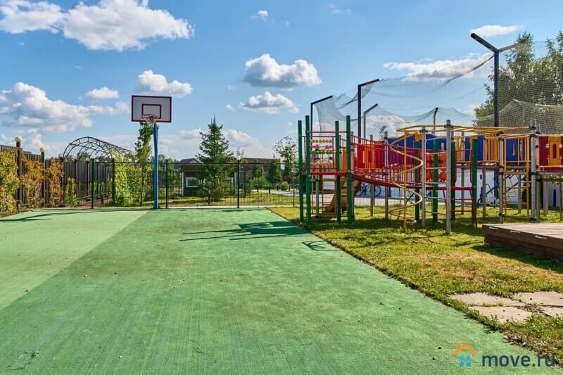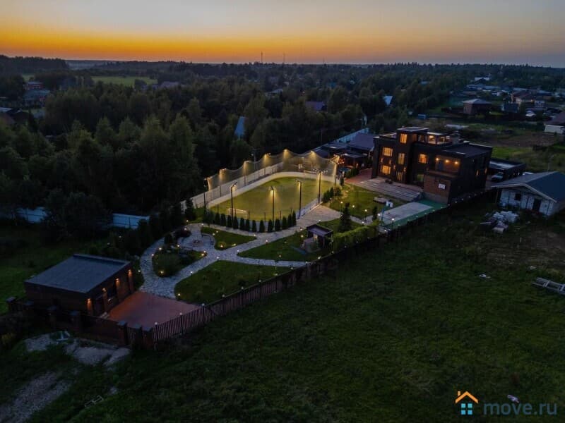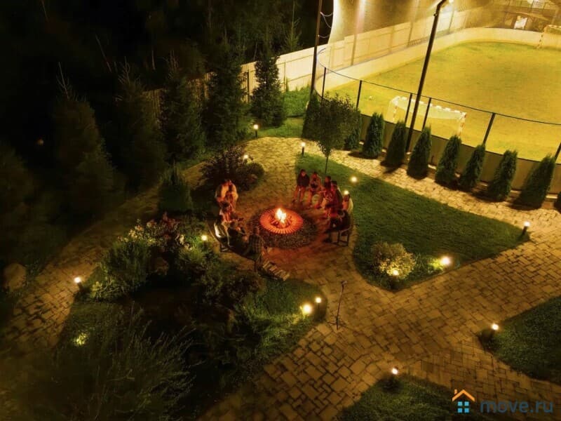Участок 35 соток. Ухоженная зеленая территория, ландшафтный дизайн. Высажены кустарники и цветы, газон. Дорожки облагорожены. Растут хвойные и лиственные деревья. Территория освещается в темное время суток. Лобное место кострище. Отдельно стоящая баня на дровах. Детская площадка со спортивно-игровым оборудованием. Гостевой домик с гостиной, кухней, душем и с/у. Футбольное поле, баскетбольная площадка. Беседка с мангальной зоной. Парковка до 12 авто.