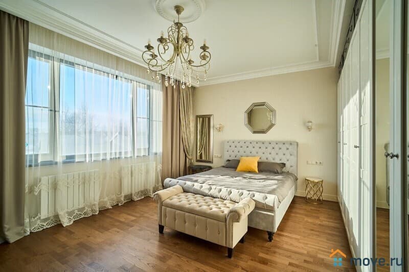На 1-м этаже: прихожая, раздевалка, просторная гостиная, кухня-столовая с необходимой посудой и техникой, рабочий кабинет, с/у, гараж, спальни