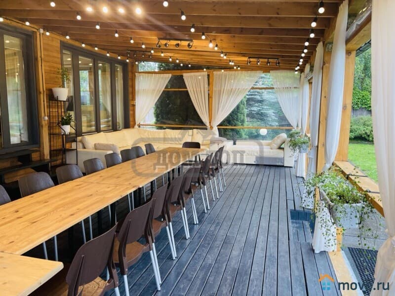 Банкетная веранда, мангальная зона, ландшафтный дизайн, детская площадка, батут, шезлонги, теннис, качели, уличный бассейн парковка на 10 авто.