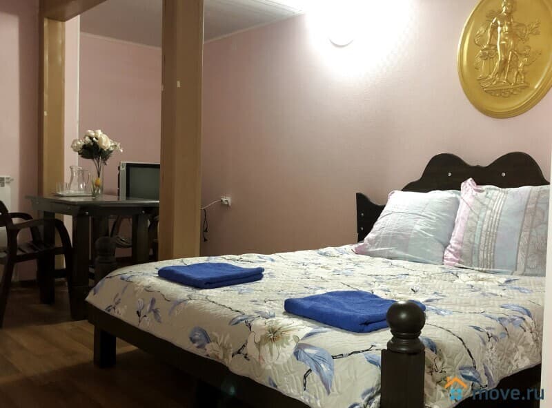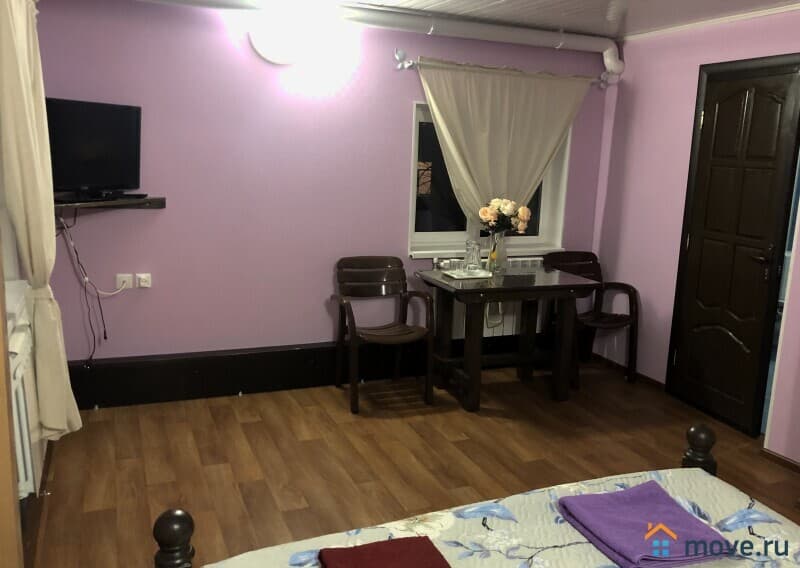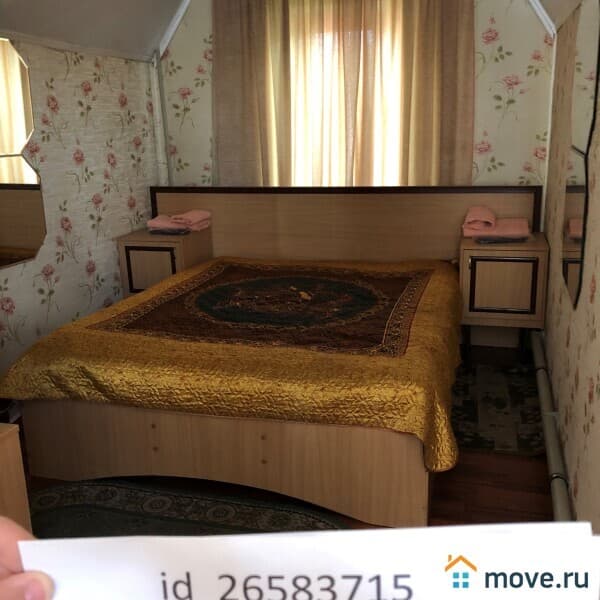 В каждой спальне первого и второго этажа гостевого дома имеется мебель, по одной большой двухместной кровати и еще одно дополнительное спальное место (раскладушка), телевизор, интернет, туалет-душевая, чистое белье, одноразовые тапочки, моющие средства. В гостевом доме возможно размещение еще 9 человек.
