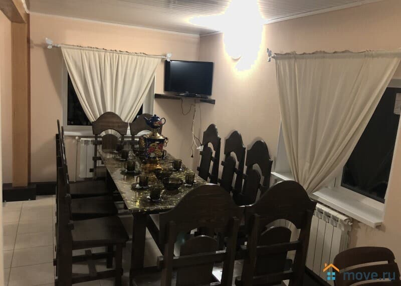 — меблированная столовая-гостиная с телевизором, холодильником, кухонной мебелью, электроплитой, микроволновкой, самоваром, столовой посудой на 15 посадочных мест;