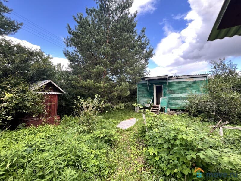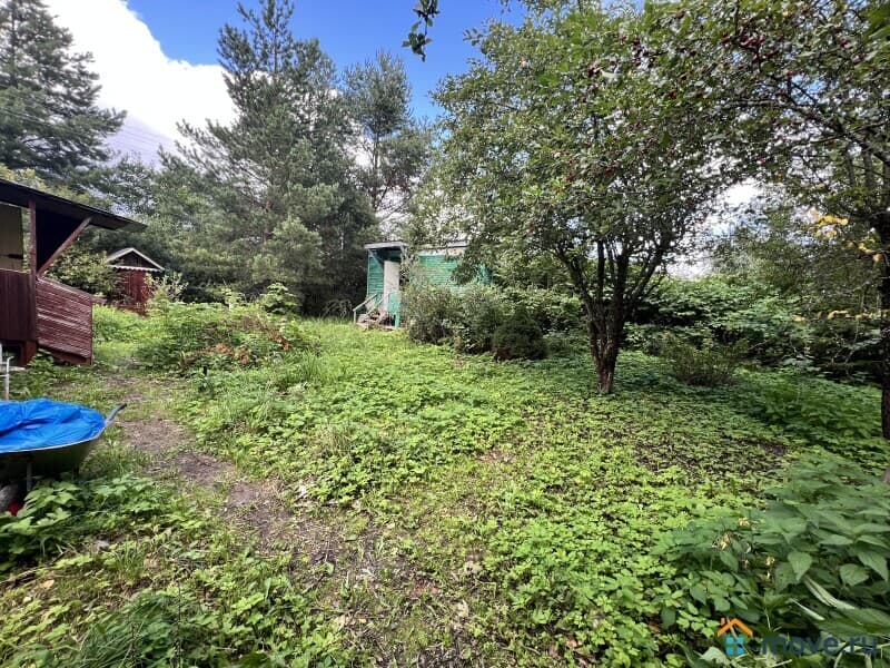 На территории участка посажены плодовые деревья, кустарники, красивые сосны.