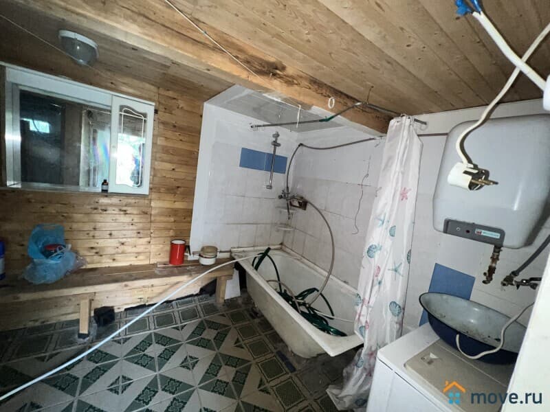 Коммуникации в бане - электричество подключено и разведено, отопление – печь, электрические конвекторы, вода заведена из колодца, установлена ванна, электрический водонагреватель, стиральная машинка.