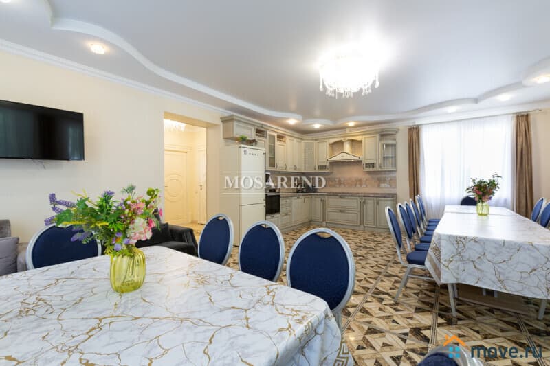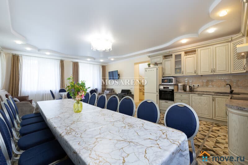 -1 этаж: банкетный зал 50 м2 на 25-30 человек с выходом на летнюю веранду вместимостью до 12 человек и отдельную зону барбекю, 1 спальня, душевая комната, кухня со встроенной техникой и со всей необходимой посудой