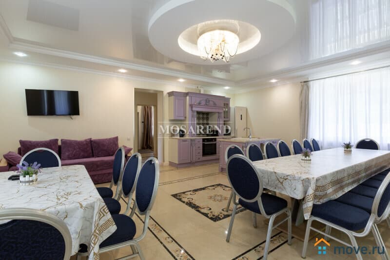 -1 этаж: банкетный зал 50 м2 на 25-30 человек с выходом на летнюю веранду вместимостью до 12 человек и отдельную зону барбекю, 1 спальня, душевая комната, кухня со встроенной техникой и со всей необходимой посудой