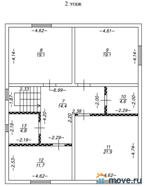 - 2 этаж: 2 спальни по 19кв.м., спальня 21,9 и 11,7 метра, санузел и и гардеробная