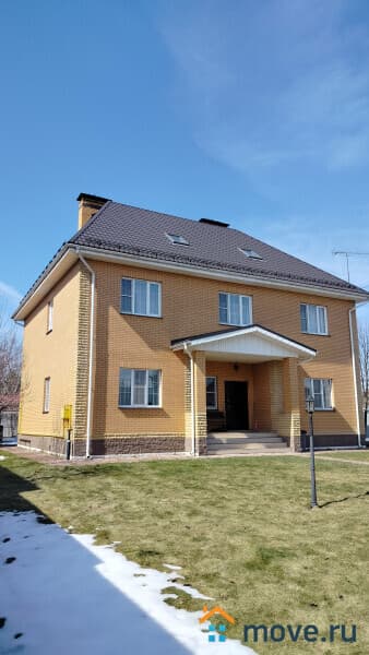 Дом полностью кирпичный, ленточный фундамент, 3-х этажный, крыша — металлочерепица.