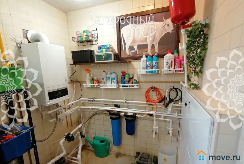 Коммуникации: магистральный газ (отопление от двухконтурного котла мощностью 32 КВт "Будерус" (Германия), трёхфазное электричество 380 В мощностью 15 КВт (деревенский тариф), водоснабжение - скважина, канализация - биосептик "Топас" с двумя компрессорами и двумя переливными колодцами, не требующий ассенизационной откачки.