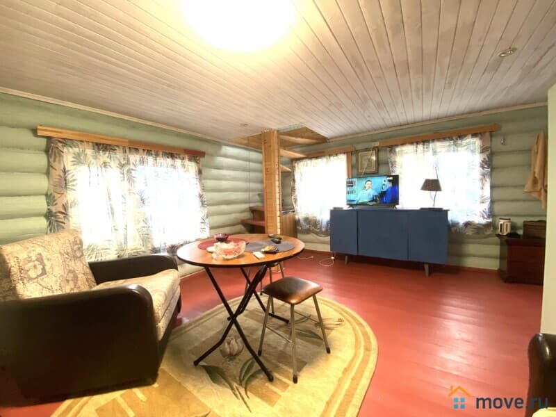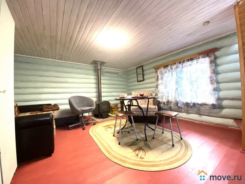 На участке расположены два дома, основной: на ленточном фундаменте, первый этаж выполнен из бревна, что придаёт постройке прочность, прихожая, кухня, гостиная; второй этаж- мансардный, одна большая комната. В доме печь, электричество, светлый, уютный, чистый.