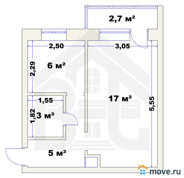 ? Площадь: Комната — 17 м?, кухня — 6 м?.