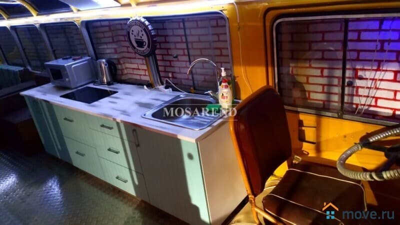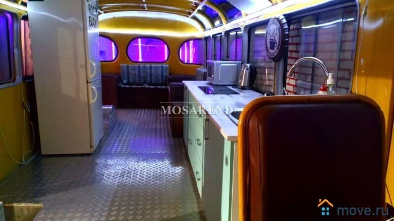 -кухня расположена внутри школьного автобуса, который соединяет основной зал со СПА-зоной