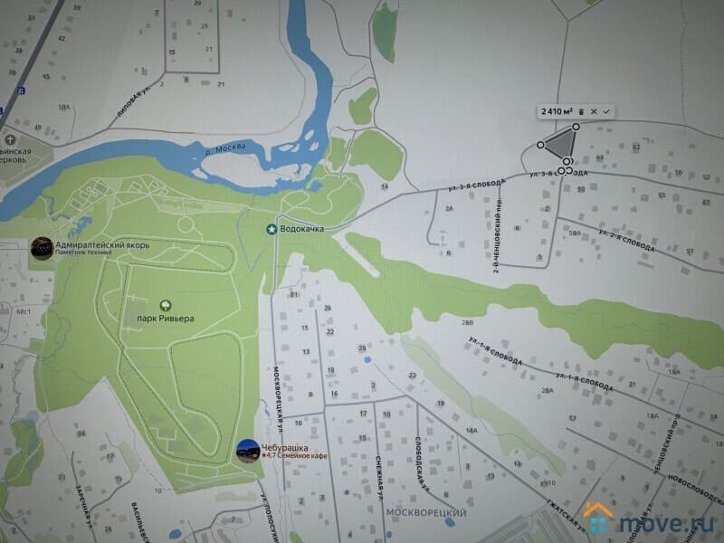 Продается видовой земельный участок 15 соток с магистральным газом и электричеством по границе, на окраине города Можайск, д. Ченцово, ул. 3-я Слобода на пересечении с ул. 1-й Ченцовский пер, вблизи Москва реки и городского парка "Ривьера" (300 метров).