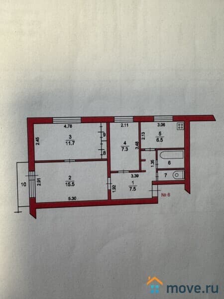 комнаты 15.5/ 11.7/ 7.5 кв.м. (есть встроенные шкафы)