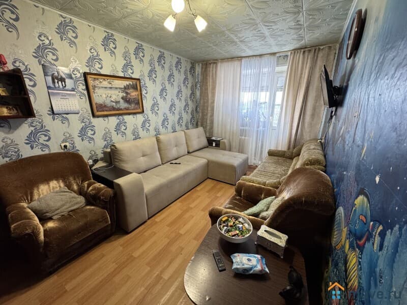 Общая площадь квартиры 44.2 кв.м., кухня 6 кв.м. Санузел совмещенный, комнаты правильной прямоугольной формы, с большой комнаты выход на балкон, окна пластиковые.
