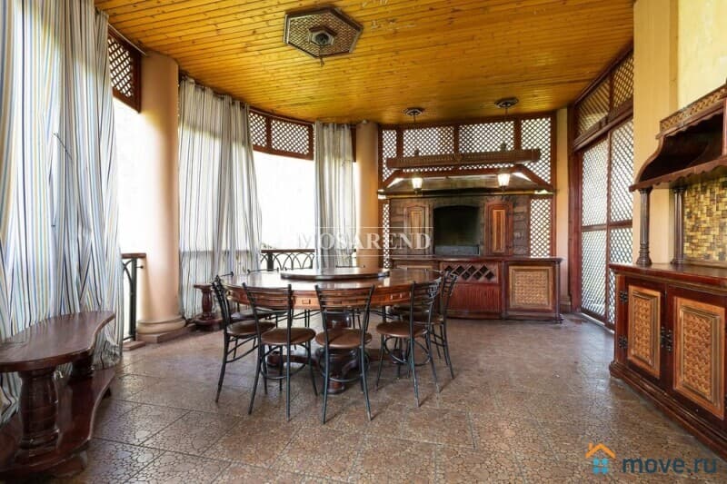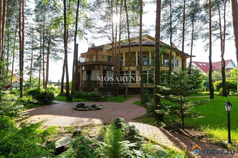 Четырёхуровневый коттедж площадью 850 м2 с банкетным залом, бассейном, баней и недалеко от пляжа расположен в 24 км от МКАД по Горьковскому или Щёлковскому шоссе, п. Монино.