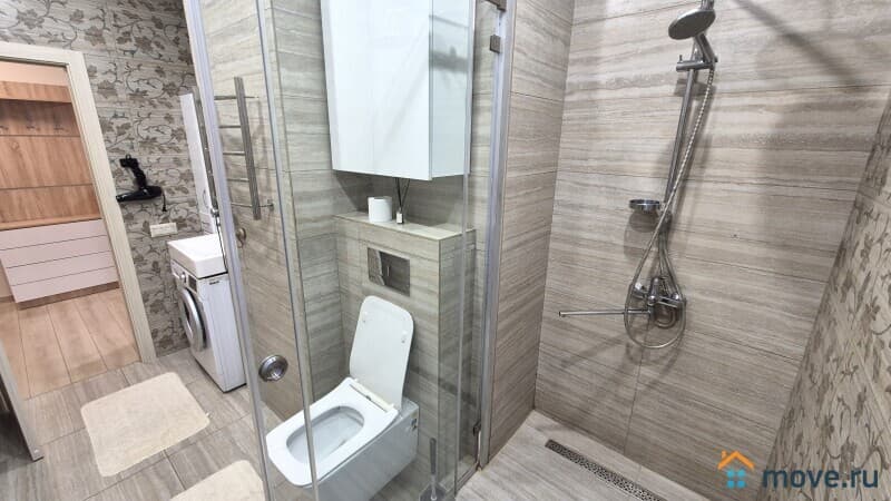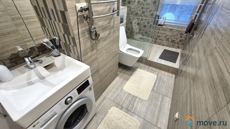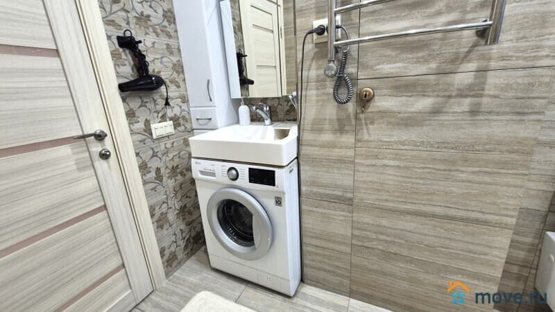В ванной работает стиральная машина, туалетные принадлежности, зубной набор, сушилка для белья.