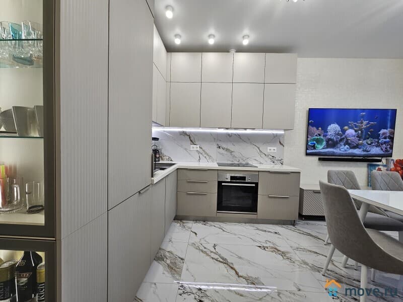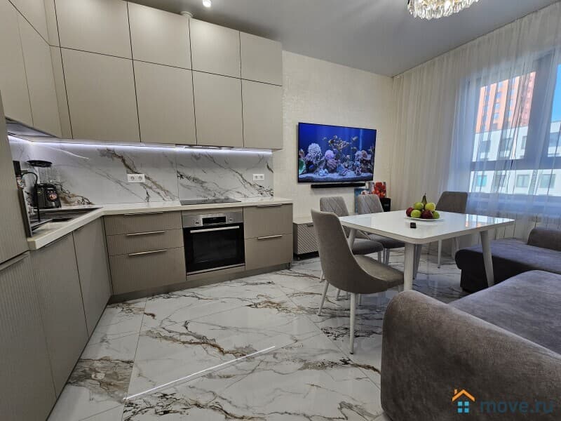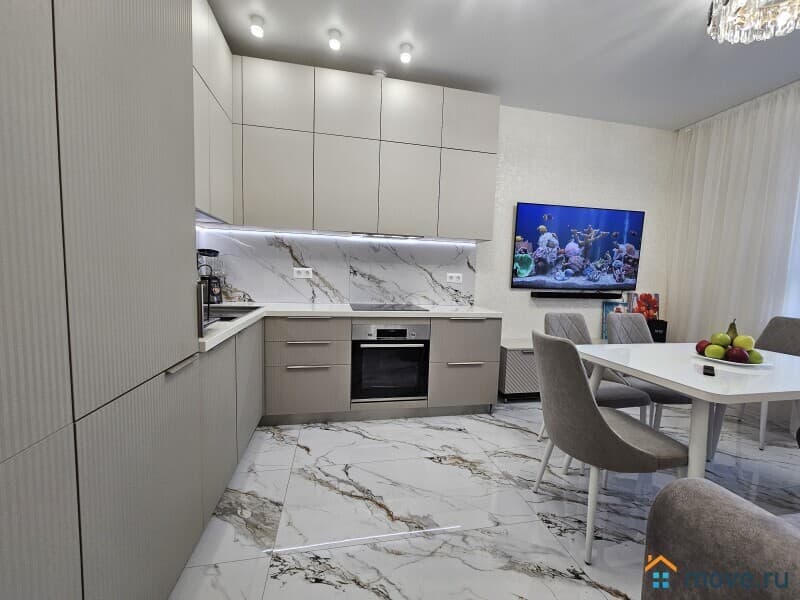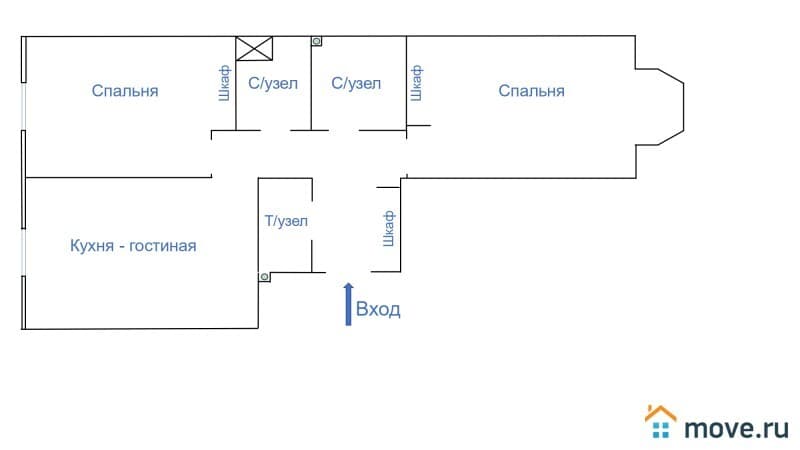 По планировке евро 3-ка распашная, 2 отдельные спальни, большая кухня - гостинная, гардеробная, 2 полноценных с/узла (в одном душевая, в другом ванна) со встроенной сантехникой, санфаянсом импортного производства.