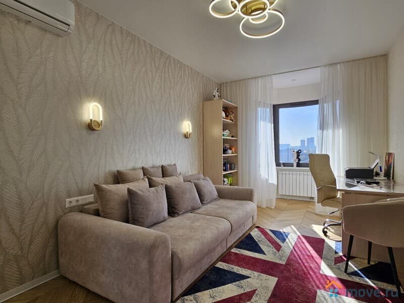 Квартира очень теплая, уютная, потрясающие видовые характеристики. Реализована концепция "двор без машин", в цоколе дома размещена парковка в два уровня на -1 и -2 этажах с выходом на 2 лифта, закрытая и охраняемая дворовая территория с большой детской площадкой.