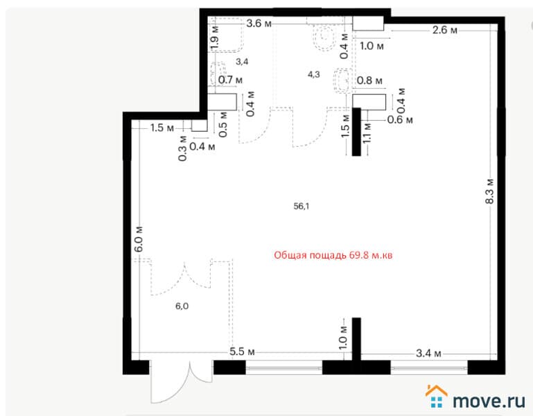 Площадь 69.8 м?