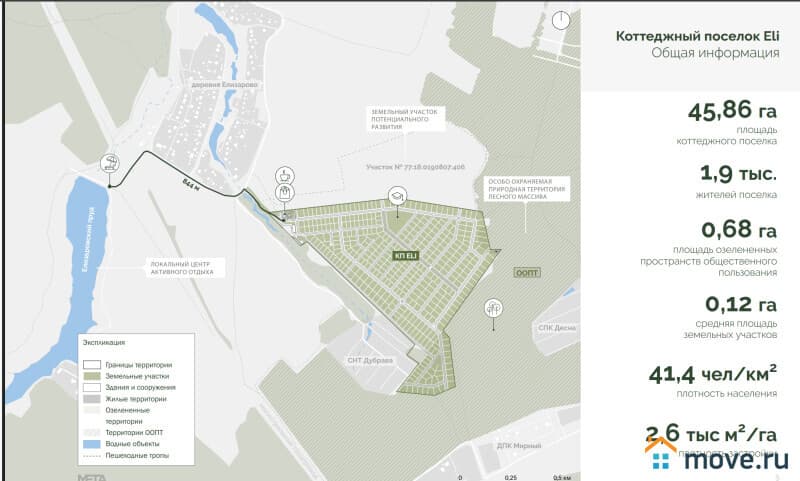 Продается участки ИЖС в деревне Елизарово, коттеджный поселке бизнес класса «ELI», территория Москвы. Поселок расположен на высоком сухом месте рядом с лесом. Благодаря розе ветров западных направлений, на территории поселка отличная экология и чистый воздух круглый год. Рядом с поселком находится Елизаровский пруд с чистой и проточной водой, зоной барбекю и пляжем
