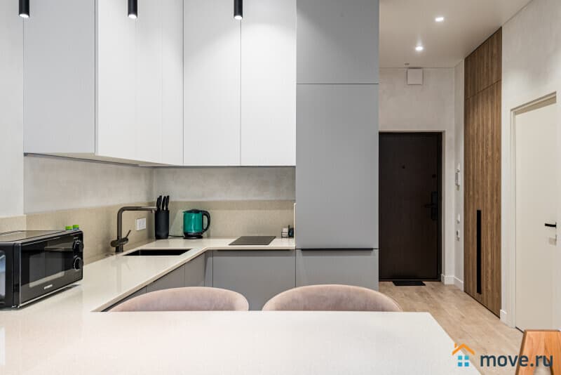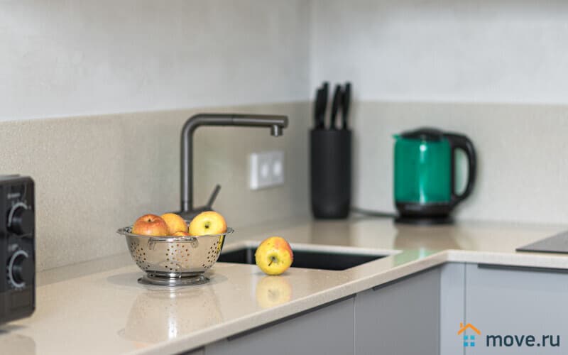 Кухня с варочной панелью, духовым шкафом, микроволновкой, чайником