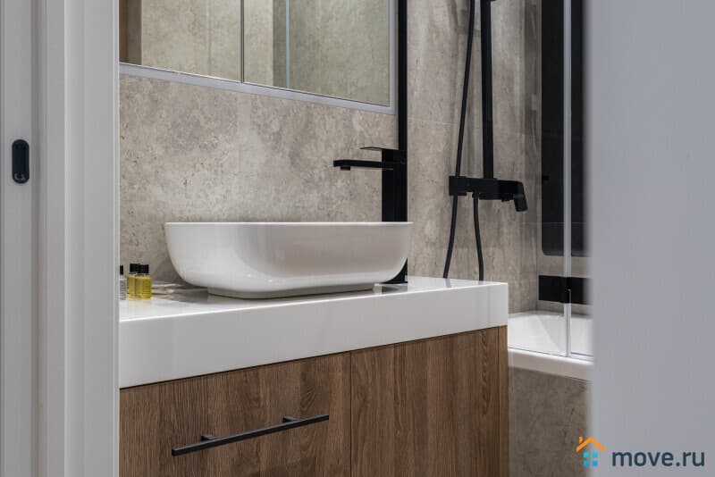 Ванная комната с душем и современной сантехникой