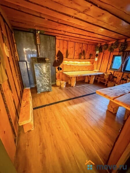 Для вашего отдыха у нас есть настоящая русская баня из натурального кедра и змеевика. Оснащена душевой на две персоны, холодной купелью и обливными устройствами и рассчитанная на комфортный отдых компанией до 10 человек.