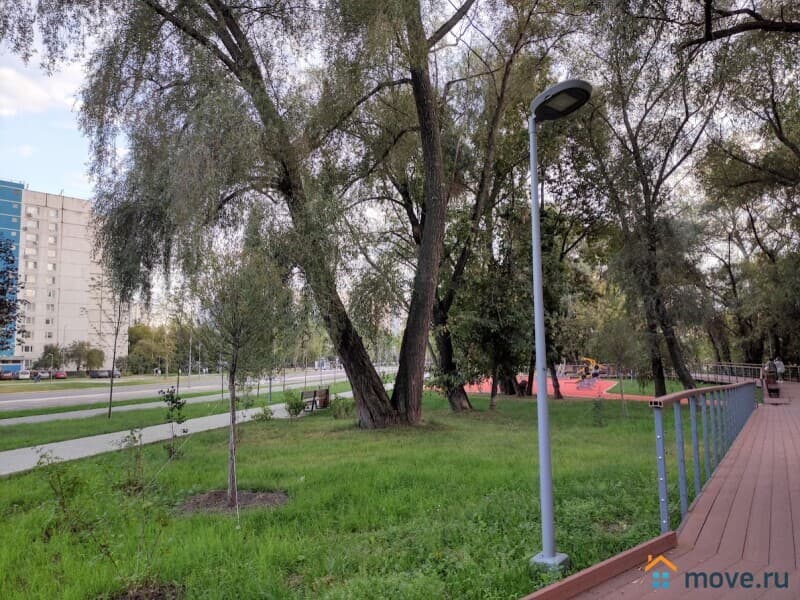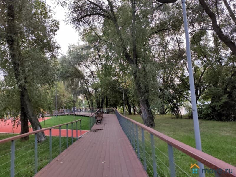 Рядом парк, красивая благоустроенная набережная у реки, продуктовые маркеты и автобусные остановки в шаговой доступности.
