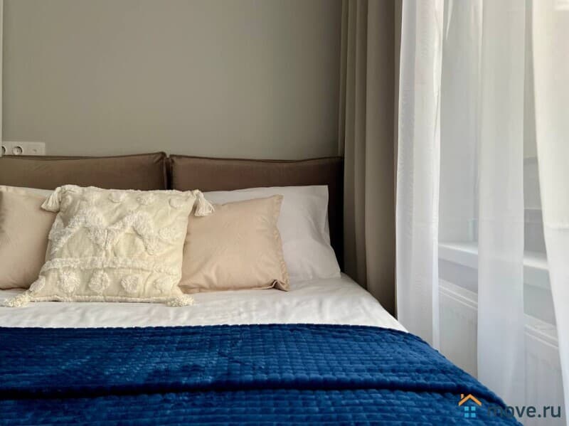 - Двуcпальная кpовать застелена постельным бельем и раскладной диван-кровать